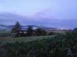 Es ist noch finster. Leichte Dämmerung ist um 4.18 Uhr (das zeigt die Uhr am Marktplatz) spürbar. Die Kirche ist leicht beleuchtet. Wir finden wieder unsere Wegmarkierung „Johannesweg“. Wir haben gestern schon gesehen, dass klar und gut markiert ist. Königswiesen verlassen wir bergwärts. Wir hören Menschen „gröllen“. Ein Fest neigt sich dem Ende und die akustischen Überbleibsel hören wir eine Stunde lang. Unglaublich, wie sich das in die tiefe Stille der Gegend bohrt. Bei der Straßenüberquerung übersehen wir ein Schild (es ist noch nicht ganz hell) und gehen falsch. Nach etwa einem Kilometer ist uns klar (es wird immer heller), dass wir falsch sind. Wir wagen einen frei gewählten Bogen einen Bach entlang zurück auf „unseren Weg“. Wir treffen ihn wieder und sind froh. „Wer nicht vom Weg abkommt, bleibt auf der Strecke“ geht mir und uns durch den Kopf. Wir gehen bergwärts durch das nasse Gras. Die Schuhe „feuchteln“. Meine Waldviertler werden innen aber nicht klassisch nass. Ein Schuh, den ich absolut empfehlen kann für solches Gelände. Nach etwa einer Stunde zeigt sich die Sonne hinter uns und unsere Seele erwacht mit. Wir haben beim Weggehen nichts gegessen. Klares Wasser war heute unser Kaffee. Nach vier Stunden erreichen wir Pierbach auf Wegen mit wunderbaren Aussichten und Stimmungen in der Landschaft. Die Nebelfetzen verziehen sich, der Tau trocknet und unsere Schuhe werden wieder trocken, weil es in diesem Fall Gott sei Dank auf Güterwegen dahingeht. Im Gasthaus Populorum geht gerade jetzt das Tor auf, weil die Kirchenbesucher und wir da sind. Für ein wunderbares Frühstück ist jetzt Zeit. Ein so frühes Weggehen ist auch an drei Tagen wirklich empfehlenswert.