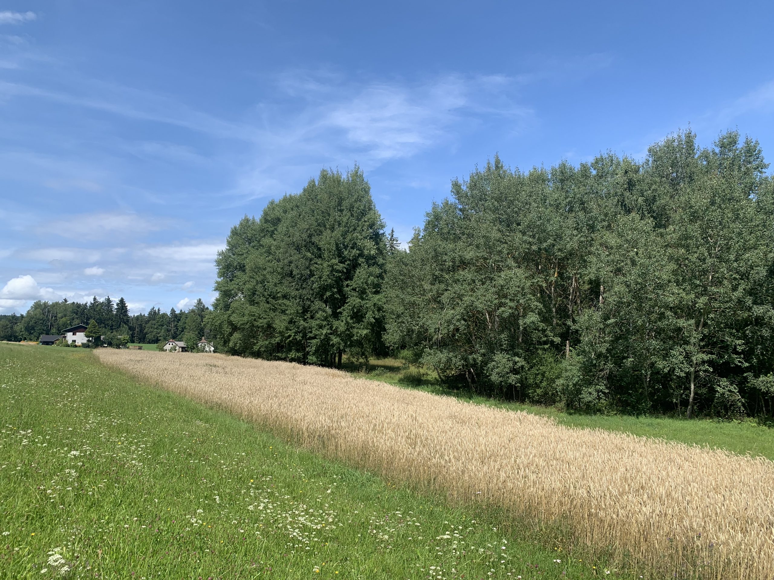„Zur Prekarisierung der kleineren Bauern trägt die allgegenwärtige Zentralisierung der Produktions- und Verarbeitungsprozesse bei“, lese ich bei den IG-Milchbauern auf ihrer Website. Das geht mir durch den Kopf, während mich meine Füsse durch die wunderbar kleinstrukturierte Gegend südlich von Groß-Gerungs rund um das Gasthaus Einfalt tragen. „Vielfalt beim Einfalt“ steht auf dem Gebäude. Zurecht. Selten wo findet man eine so vielfältige Landschaft wie hier im Waldviertel. Da sind Wälder, die ich gerne „Beerenwälder“ nenne, auch wenn sie hier einen „Bären-Trail“ markieren. Da sind Wiesen mit ihren Blumen und Gräsern in Vielfalt. Und da sind die kleinen Felder mit verschiedenen Getreidesorten, die irgendwie „direkt“ im Wald stehen. Die gigantischen Mähdrescher, die im Flachland unterwegs sind, haben sicherlich hier ihre Schwierigkeiten. Zu oft umkehren, zu viele „Leerfahrten“ und sicherlich viel zu breit und zu schwer.