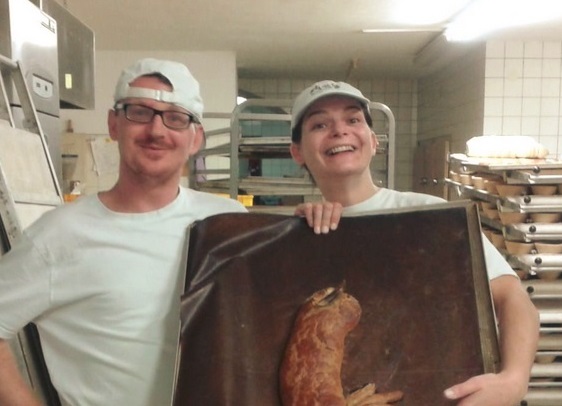 Warum ist das so? Damit es weiter Brot im Bergdorf gibt, braucht es zwei Dinge. Da ist einmal die Bäckerei. Ich habe den Eindruck und spüre es auch, dass hier ein paar junge Leute am Werk sind, die Spaß haben an ihrer Arbeit, an ihrem Produkt. Das Bäckerleben ist ja etwas außerhalb des normalen Zeitrhythmus. Um Mitternacht aufstehen und fertig sein, wenn alle in der Arbeit sind, also schon Brot gegessen haben. Wir können hier in Kirchschlag froh sein, dass sich hier diese Frauen und Männer rund um das Brot und die wunderbaren Mehlspeisen „gefunden“ haben. Das ist die eine Seite. Es braucht aber auch KonsumentInnen, die diese „echten Brot-Produkte“ auch kaufen, konsumieren, genießen. Die „tief gefrorene Teigling“ lauert verführerisch in allen Supermärkten und das in vollem Angebot bis zur letzten Minute. Es kann schon sein, dass in unserem Kaufhaus einmal das spezielle Flesserl gerade aus ist. Das ist gut so. Nochmals: Das ist gut so. Wo kommen wir auf Dauer hin, wenn wir immer alles und sofort jederzeit zur Verfügung haben? Das redet uns der Teigling aus den Tiefkühlfach ein. Dort liegt die Konsum-Ideologie – aber nicht die nährende Lebensphilosophie. Zurück zu unserem Bäcker hier im Bergdorf. Euch allen Danke.