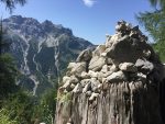 Nächsten Tag steigen wir zweieinhalb Stunden zum Gipfel auf und nach fünf Stunden sind wir wieder zurück auf der Hütte. Der Gipfel hat uns lange gehalten, weil es wunderbares, warmes Wetter gab und die Aussicht, der Blick uns gehalten haben. Wir genießen noch eine Stunde vor der Hütte und entdecken gegenüber einen „Kopf“. Nein, nicht die schlafende Griechin (Erla-Kogel). Sie schläft weiter weg. Es ist ein Gesicht, das heute auf der Welt fast jede und jeder kennt.