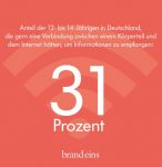 Nicht immer lese ich „brand eins“. Meist im Vorbeigehen, in einer Zwischenzeit am Bahnhof blättere ich darin. Diesmal bin ich direkt in einen gewissen Schockzustand gefallen: „31 % der jungen Leute können sich eine direkte Verbindung von einem Körperteil mit dem Netz vorstellen.“ Konkret: Sie würden sich die Funktionen des Smartphone als Chip implantieren lassen.