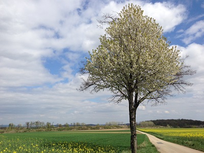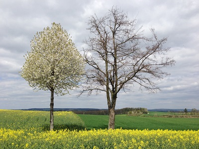 Am frühen Nachmittag geht es ans Gehen. Die Dame im Informationsbüro hat mir eine Karte geschenkt. Da sind auch größer Feldwege eingezeichnet. Mein Ziel ist möglichst wenig auf Strassen von Eggenburg nach Maria Dreieichen (2 1/2 Stunden) und weiter ins Stift Altenburg (2 1/2 Stunden) zu gelangen. Es gelang und es war wunderschön. Die Sonne, der kühlende Wind und diese blühende karge und ausgetrocknete Landschaft. Zwei Bäume führen mit anschaulich vor Augen, was ich im nächsten ON unter dem Titel „Wie kommt das Neue in die Organisation“ beschreibe. Ein alter und ein junger Baum schauen zuerst wie einer aus, dann werden beide sichtbar und schließlich steht der Neue vor dem Alten. Im Vorbeigehen hat sich das Bild total gewandelt, obwohl die zwei Bäume stehen geblieben sind. Dieses Erlebnis im Schauen werde ich morgen Abtpräses Christian Haidinger als Bild für die Ordensgemeinschaften erzählen. Das Junge ist zuerst nur als Teil des Alten sichtbar. Bringst du dich in Bewegung, wird auf einmal das Junge als eigenständig sichtbar. Entfernst du dich, entschwindet das Alte und es steht der blühende Baum in der Landschaft. Da werde ich nochmals nachdenken und einen eigenen Beitrag verfassen. Klarer und mit den Bildern einzeln belegt. Ein spannender Aspekt der Entwicklung von Ordensgemeinschaften lag am Weg. Gut müde führt mich Abtpräses Christian in meine Klosterzelle. Claus Sendlinger von den Designer-Hotels hat ja einmal gesagt: Wenn du heute jemanden etwas ganz Besonderes schenken möchtest, dann Natur, Retreat oder Klosterzelle. Da bin ich.
