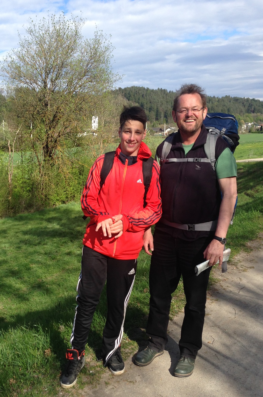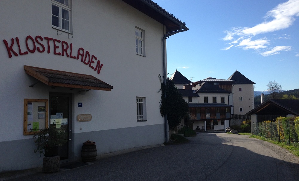 Am Drauufer treffe ich zwei „Jungs“. Ich frage sie nach dem Weg. Wir kommen ins Gespräch. Sie fragen, was ich mache und wie lange ich schon unterwegs bin. Ich erzähle ihnen und verabschiede mich wieder. Nach einer Zeit kommen sie mit dem Fahrrad hinter mir her und möchten mit mir ein Foto machen. Warum, frage ich. „Wir finden das cool und mit so einem Mann wollen wir ein Foto haben.“ Äußerlich ragiere ich überrascht und innerlich freue ich mich über das Interesse der „Jungs“. Dem Kloster nähere ich mich über die Direttissima durch den steilen Wald hinauf. Das Klostergut, der Klosterladen, die Buchstaben „Kindergarten“ an der Hausfront und die Klosterpforte haben eine einladende Aura. An der Klosterpforte werde ich offen empfangen. Es ist so, als ob ich irgendwie erwartet würde. „Sie waren heute schon Thema. Sie müssten irgendwann kommen.“ Da bin ich, bekomme ein schönes Zimmer mit toller Aussicht. Nach der „körperlichen Sanierung“ bin ich zum Käsebuffet am Gründonnerstag geladen. Alles selbst gemacht vom Klostergut oder aus der Region. „Das ist uns ganz wichtig“, meint Sr. Johanna, die Hausoberin und Provinzleiterin am nächsten Tag im Hof zu mir. Ich erlebe: Da wird Nachhaltigkeit nicht plakatiert, sondern seit Jahrzehnten gelebt. Das sind gesegnete „Lebensmittel“.