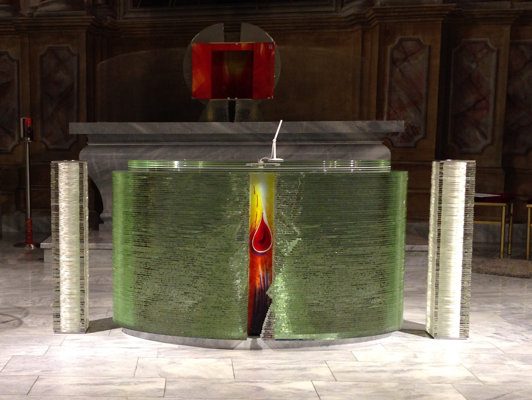 Das JAHR DER ORDEN ist in den vielen Gesprächen, die ich mit verschiedenen Schwestern führe, „noch nicht präsent“. Das ist nicht nur hier so. Deshalb bin ich auch unterwegs und ganz Ohr. Oberin Sr. Johanna erzählt, dass sie selber 2015 zwei wichtige Jubiläen feiern. „Die Kongregation ist seit der Gründung 130 Jahren weltweit tätig und seit 80 Jahren sind wir in Wernberg. Nicht einmal da sind wir bisher dazugekommen, uns etwas zu überlegen.“ Wir sind uns aber darin einig, „dass nichts Zusätzliches gemacht werden soll, sondern eher eine Reduktion auf das Wesentliche stattfinden und das gut zum Ausdruck gebracht werden soll.“ Das erinnert mich an das gestrige Abendmahl zum Gründonnerstag. Einfach, geradelinig, meditativ und mehrstimmiger Gesang der Ordensfrauen mit uns allen. Der neue Altar aus Glas hat etwas von der Transparenz in Richtung Transzendenz für mich ausgestrahlt.