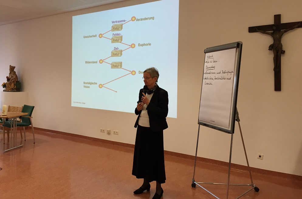 Wirklich tief beeindruckt komme ich von der Tagung der Oberinnen in Vöcklabruck. Ich durfte dort Sr. Edith Maria Magar von den Waldbreitbacher Franziskanerinnen zwei Tage live erleben. An die 100 Ordensfrauen gingen der Frage nach, wie ein gutes Miteinander von „Laien und Ordensfrauen“ gelingen kann. Die Waldbreitbacher Ordensfrauen waren Pionierinnen in einem neuen Miteinander, auf Augenhöhe, mit Übertragung von großer Verantwortung. Mit tiefem Vertrauen und höchster Kompetenz ausgestattet, haben sie ihre Werke übergeben, übertragen, in die Hände von Mitarbeiterinnen gelegt. Heute arbeiten in 200 Einrichtung etwa 20.000 Frauen und Männer. Sie ist als Generaloberin sozusagen die „Konzernchefin“ eines ausbalanzierten Netzwerkes von handelnden Personen, in den höchsten Verantwortungen fast nur Frauen. Sie spricht ruhig, hat eine ganz klare Sicht, leitet aus dem christlichen Selbstverständnis Anforderungen ab, immer gepaart mit dem Anspruch, alles im Prozess zu sehen. Die hohe Qualität in den Begegnungen spüre ich aus ihren Worten. Der „kollegiale Austausch auf Augenhöhe“ ist das Lebenselexier.