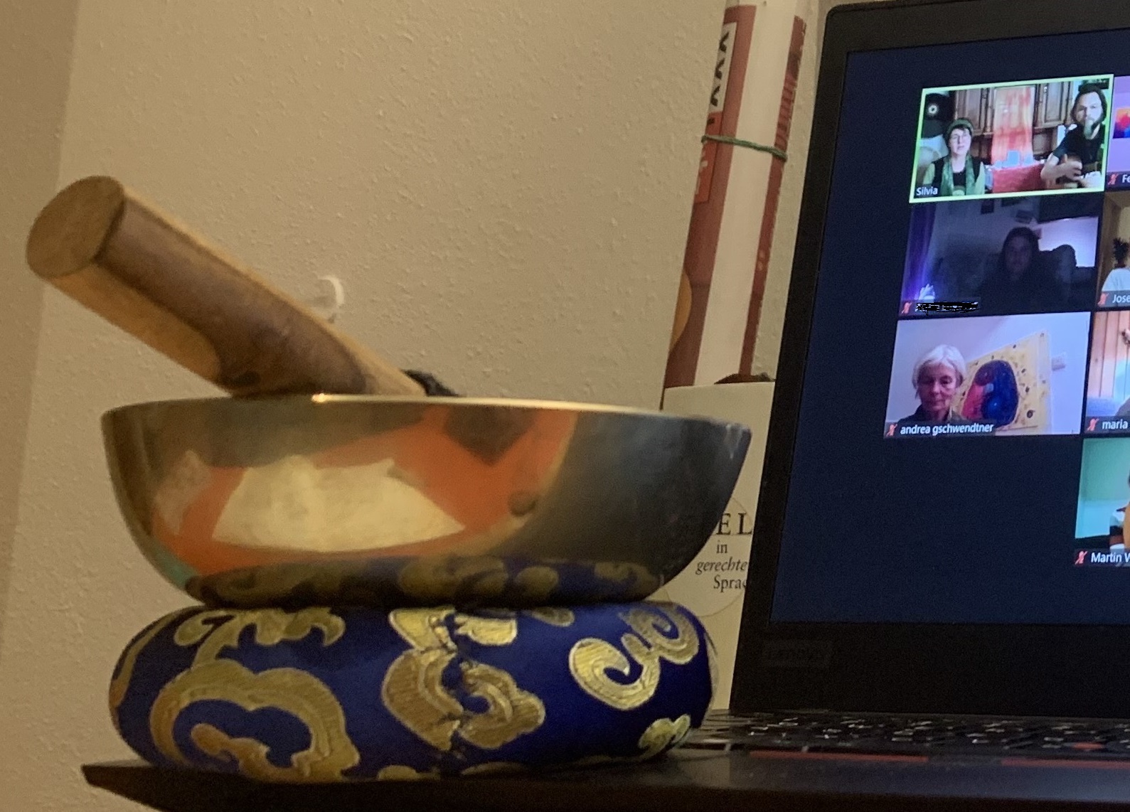 „Nimm deine Werkzeugkiste und verwende alle Werkzeuge, die dir zur Verfügung stehen. Lerne Widerstand am Vorbild indianischer und afrikanischer Völker.“ Ja, der Blick hinaus lehrt uns Demut und nimmt jede wehleidige Überheblichkeit. Wir sehen dort, wie unser Lebensstil hier seine scheußliche Wirkung entfaltet: „Wir wurden und werden noch immer ausgerottet, aber wir haben nie aufgehört zu singen, zu tanzen, ein Feuer zu entzünden und Freude zu haben. Fühle dich nicht schuldig, Glück zu empfinden in diesen schwierigen Zeiten. Es hilft überhaupt nicht, traurig und energielos zu sein.“ Das ist jetzt doch recht leicht hingesagt. Auch in unserer Abschlußrunde meint Josef, wie wichtig es ist, den Humor und die Freude nicht zu verlieren. Und doch ist richtig, was im Text weiter gesagt wird: „Es hilft, wenn jetzt gute Dinge aus dem Universum kommen. Durch Freude leistet man Widerstand. Denn wenn der Sturm vorübergezogen ist, wird jede und jeder einzelne von euch sehr wichtig sein, um die neue Welt wieder aufzubauen. Dafür ist es wichtig, stark und positiv zu sein. Und dafür gibt es keinen anderen Weg, als eine schöne, freud- und lichtvolle Schwingung zu bewahren. Das hat nichts mit Entfremdung (Weltfremdheit) zu tun. Es ist eine Strategie des Widerstands.“ Widerstehe, ist die letzte Botschaft am Ende des Textes. „Singe, tanze, wiederstehe durch Kunst, Freude, Glauben und Liebe.“ Es war unser aller Wunsch gestern abends: Bleiben wir geöffnet für die Pforte hinein in eine neue Welt, die auf uns wartet und von der die „Loch-Betreiber“ so wenig verstehen, sie nicht einmal erahnen. Erlauben wir uns gemeinsam, diese Lockdown-Zeit dafür zu nutzen, in unseren Ritualen das Suchen dieser Vision auszuführen. “ Welche Welt möchtest du für die Menschen, mit ihnen und für dich erschaffen?“ Diese gemeinsame Stunde war gut. Ein stärkender Zusammenklang. Danke.