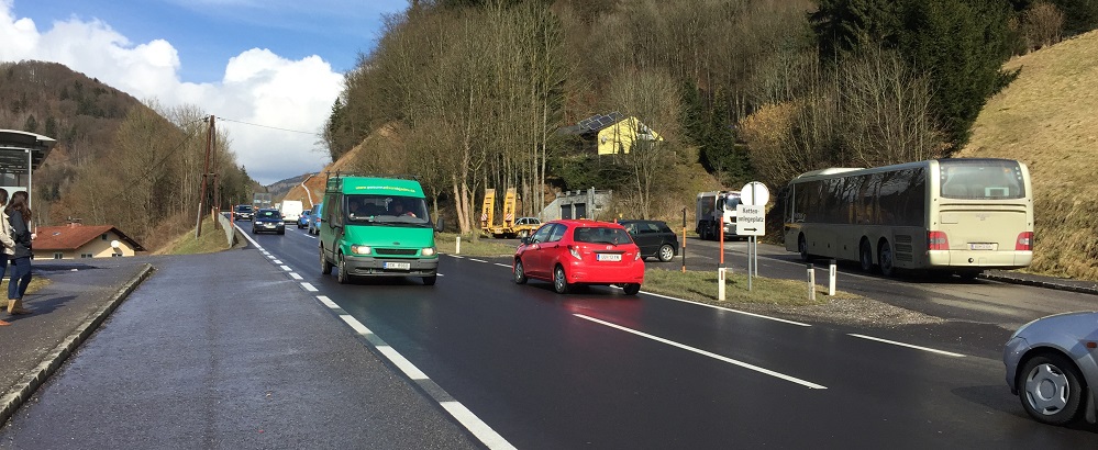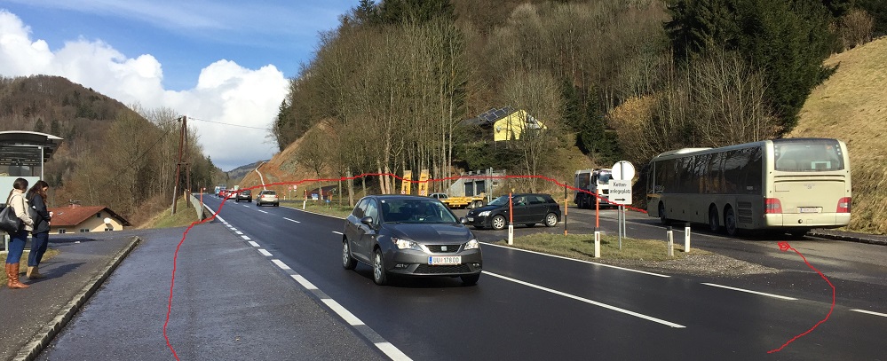 „I spü a Liad für di“ lässt sich der Buschaffeur aus dem Regioalradio durch seine Ohren ins Gehirn liefern. Dass ich hier mithören muss, finde ich für mein Musikempfinden nicht erhellend, aber es ist OK, dass ein Buschaffeur (auf dieser Strecke fahren bisher nur Männer) sich emotional mit „seiner“ Musik die Fahrt angenehm gestaltet. Manchmal meinen sie sogar, dass das für alle mitfahrenden Gäste eine Wohltat wäre. Das Lied ist aus und wir steigen um. Es ist immer spannend, ob der Busfahrer die vereinbarte Sicherheits-Schleife fährt oder uns die gefährliche Haselgrabenstraße auf eigene Faust überqueren lässt. Mein Bruder (er ist auch passionierter Öffi-Fahrer) hatte damals die geniale Idee, dass der Bus einfach eine kleine Schleife ausfährt, um die Fahrgäste (Kinder, Erwachsene und Ältere) direkt auf der gegenüberliegenden Seite bei der Haltestelle abzusetzen. Der Bus fährt seine 360° fertig und steht wieder bereit für die Abfahrt mit den neuen Gästen. Keine Baumaßnahmen nötig und maximial eine Minute weg von der Wartezeit – nicht Fahrzeit. Was wurde da alles überlegt: Zebrastreifen, Unterführung. So einfach geht es. Heute: Ginge es.