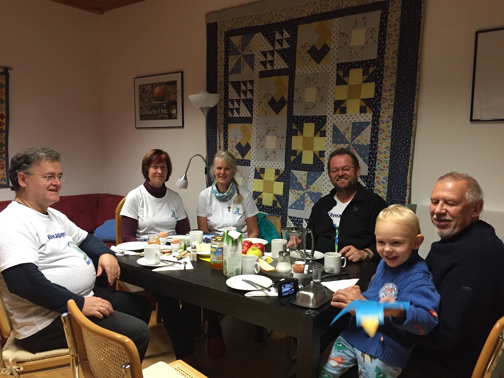 #Klimapilger hat der 3-jährige Noah noch nie gesehen. Er war neugierig. „Kommt ihr eh zum Frühstück?“, frage der über die Oma. Ja, wir bekommen heute ein wunderbares Frühstück bei den Binders. Und Noah hat uns gemustert. Ein gemeinsames Foto war ihm dann sogar recht. Wir brechen auf in die Sonntagsmesse in Purkersdor. Es wurden besondere Geburtstag gefeiert, die Ehejubilare und wir Klimapilger haben den Segen bekommen. Bürgermeister Schlögel saß in der Bank hinter uns und beim Segen für die besonderen Geburtstagskinder war er vor uns. Hans Hisch von den Pilgrim-Schulen hat uns wieder ein besonderes Projekt des Purkersdorfer Gymnasiums in den Rucksack der Alternativen mitgegeben. Und er ist wie Pia und die Tochter von Rembert ein Stück des Waldweges mitgegangen. 11 Uhr war Abgang und das war, wie wir am Abend gesehen haben, für die fast 26 km „etwas spät“.