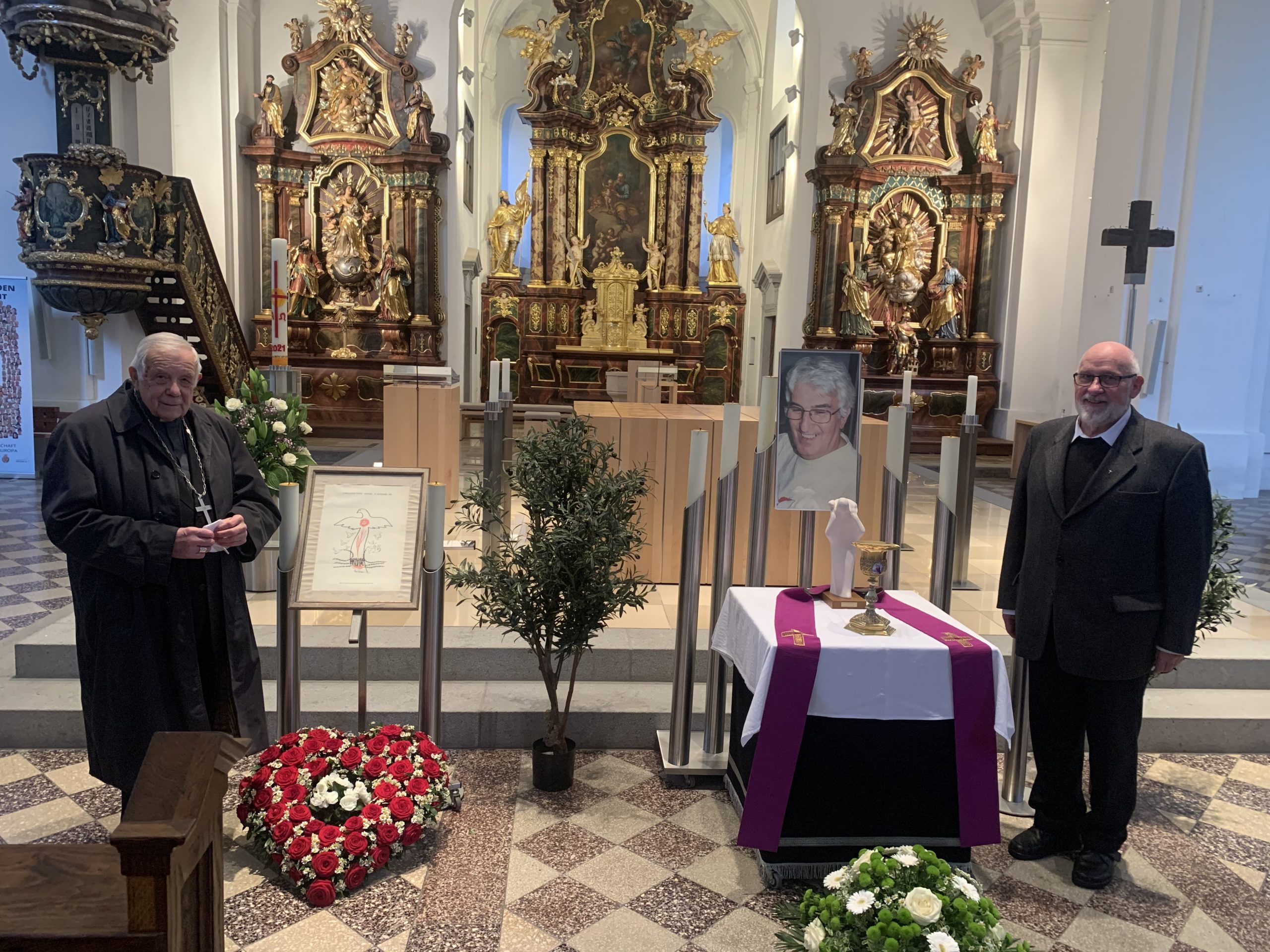 Schon auf der Fahrt habe ich vom Bischof begeistert erzählt bekommen, wer und was diese Partnerschaft von Prato und Ebensee begründet hat. Er selber war oftmals bei den Austauschtreffen dabei, in Ebensee, in Prato. Als Hitler in Italien gegen seinen ehemaligen Verbündeten Mussolini vorgegangen ist, hat er in der Stadt Prato auch die Fabriken eingenommen, zu Waffenproduktionsstätten umgemodelt, die Arbeiter nicht wie üblich entlohnt und die Arbeitszeit und -bedingungen verschlechtert. Die Arbeiter haben sich gewehrt und Arbeiter wurden erschossen. Viele andere hat man in das KZ Ebensee verfrachtet, wo sie unwürdig zu Tode kamen. Einige haben überlebt. Sie haben dieses Andenken bei Gedenkfeiern hochgehalten, als tröstende Erinnerung und als Mahnung bis heute. Eine Freundschaft von Pratesen und Ebenseern hat sich entwickelt. Don Mauro war in seiner Arbeiterpfarre Santa Lucia dafür ein Treiber, die Stadt Prato, die Gemeinde Ebensee, die Pfarren und Diözesen haben sich schließlich „in einer Vergeschwisterung“ verbündet. Seit 1988 gibt es regen Austausch. Der Bischof schildert die Erlebnisse bei den gegenseitigen Besuchen, den Fahrten, den gemeinsamen Ausflügen, wie Familien die Gäste gegenseitig aufgenommen haben, Jugendliche dort wie da einander besuchten. Die Fahrt bis Ebensee vergeht wie im Flug. „Und jetzt ist Don Mauro gestorben. Er wird uns allen sehr fehlen.“ In der Kirche ist ein großes Bild aufgerichtet, ein guter Hirte steht neben dem Kelch, umgeben von der Stola. Daneben das Friedenszeichen dieser Freundschaft, ein Herz aus roten Rosen und andere Blumen am Boden. Ich stehe davor und ohne Dom Mauro persönlich zu kennen, spüre ich, dass mich hier ein „Friedensstifter und Brückenbauer“ anschaut. Mit unermüdlichem Eifer hat er Frieden, Freundschaft, Hilfe und Solidarität gestiftet, begründet in seiner Sicht auf das Evanglium. Wir alle nehmen Platz, feiern die Messe, hören die schöne Musik von der Empore herunter, die wertschätzende Predigt von Pfarrer Rockenschaub.