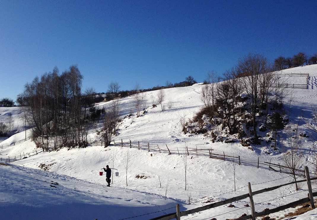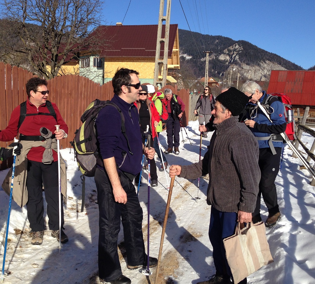 Ich höre noch immer die monotonen nächtlichen Zuggeräusche, obwohl ich seit Stunden nicht mehr im Schlafwagen liege. Immer wieder taucht der Wasser tragende Bauer auf. Neun Tage „Weltanschauen“ in Siebenbürgen in Rumänien, in den Karpaten und in Kronstadt (Brasov) liegen hinter mir. Meine sechszehn Mitreisenden haben von Wien-Meidling angefangen bis Linz unser gemeinsames Reisemittel Zug verlassen. Alle Gesichter haben beim Abschied einen zufriedenen, mit Eindrücken, Begegnungen und Erfahrungen genährten Eindruck gemacht. Die Zugfahrt hat der Seele Platz und Zeit gegeben, das „Erfahrene“ schon etwas zu ordnen. Zumindest mir ist es so ergangen. Nachhaltig reisen war und ist unser Ziel. Unser vorgenommenes Programm und unsere Winterwanderungen haben wir alle gemacht, „ohne dabei ein Programm erfüllen zu müssen“. Es kam uns irgendwie entgegen. Schauen, hinhören, bewegen, gut essen und ausruhen haben eine gute Balance gefunden. Lachen und Spaß war immer dabei.