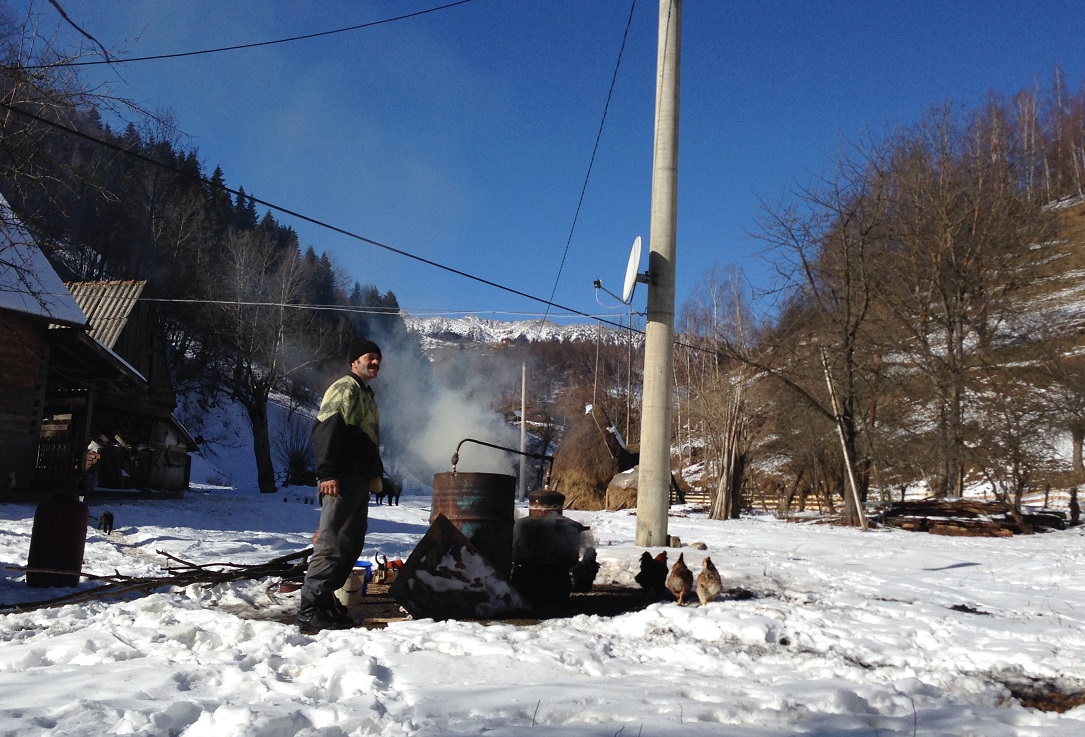 Wir sehen am Abend einen ARTE-Film über Bären, Wölfe, Hirten, Schafe und aus meiner Sicht – Commons. Die unglaublichen Weiten der Wälder und Bergwiesen werden von den Hirten genutzt für ihre Schafe. Ihnen gehört das Land nicht, aber sie nutzen es zusammen mit den Wildtieren mit ihren Schafen. Angriff und Verteidigung treffen hier täglich bzw nächtlich aufeinander. Katharina und Hermann Kurmes von der Villa Hermani im Bergdorf Magura, wo wir untergebracht waren und bestens versorgt wurden, kamen über Schutzprogramme für Bären und Wildtiere in dieses Gegend des Nationalparks rund um den Königsstein. Sie haben sich entschieden, hier zu bleiben und im Bereich „Öko-Tourismus und lokale Gastronomie“ sich zu engagieren. Ihre Geschichte zu hören ist eine „Mut-Injektion für alle, die überlegen, Neues anzugehen“. Alle ihre zehn Angestellten und Partner kommen aus dem Dorf, wo am frühen Morgen weit vor 6 Uhr etwa 40-50 Personen zu Fuß über 2 1/2 Stunden in die Arbeit ins Tal hinunter gehen. Mit der Villa Hermani haben Menschen und hier vor allem Frauen einen Arbeitsplatz in unmittelbarer Nähe. Nicht nur das: Alle Produkte wie Käse, Butter, Fleisch, Gemüse usw stammen aus den einfachen Bauernhäusern aus dem Dorf. Bei unserem 5-stündigen Rundgang durch diese Gegend kommen wir zu einem Haus, wo gerade ein Schwein geschlachtet wird. Ein anderer Bauer brennt Schnaps auf einfachste Weise im Freien. In mir werden alle Kindheitserinnerungen vor 40-50 Jahren „von uns daheim“ wachgerufen. Am letzten Abend danke ich unseren Gastgebern im Namen aller für diesen „prophetischen Dienst“ hier in dieser Gegend in Zusammenarbeit mit den Menschen. Es gilt auch für sie: „Sie säen, pflegen und andere werden ernten.“ Sie sind unglaublich engagiert, initiativ und strahlen Zukunft aus. Echte Profis.