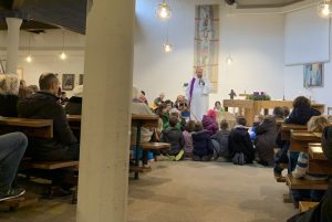 Eine große Schar von Kindern umringt den Pfarrassistenten Matthias List in der Pfarre St. Markus. Der erste Adventsonntag wird mit der Wortgottesfeier begangen. Das Warten auf die erste Kerze am Adventkranz hat ein Ende und das ganz große Warten auf das Christkind kann beginnen. Die Kinder in Geduld lehren, Tag für Tag, ist für Eltern und Großeltern immer eine besondere Herausforderung. Das braucht schon mächtige „Narrative“, um den Adventkalender Tag für Tag auf Schiene zu halten und nicht unbedacht nach vorne zu stolpern.